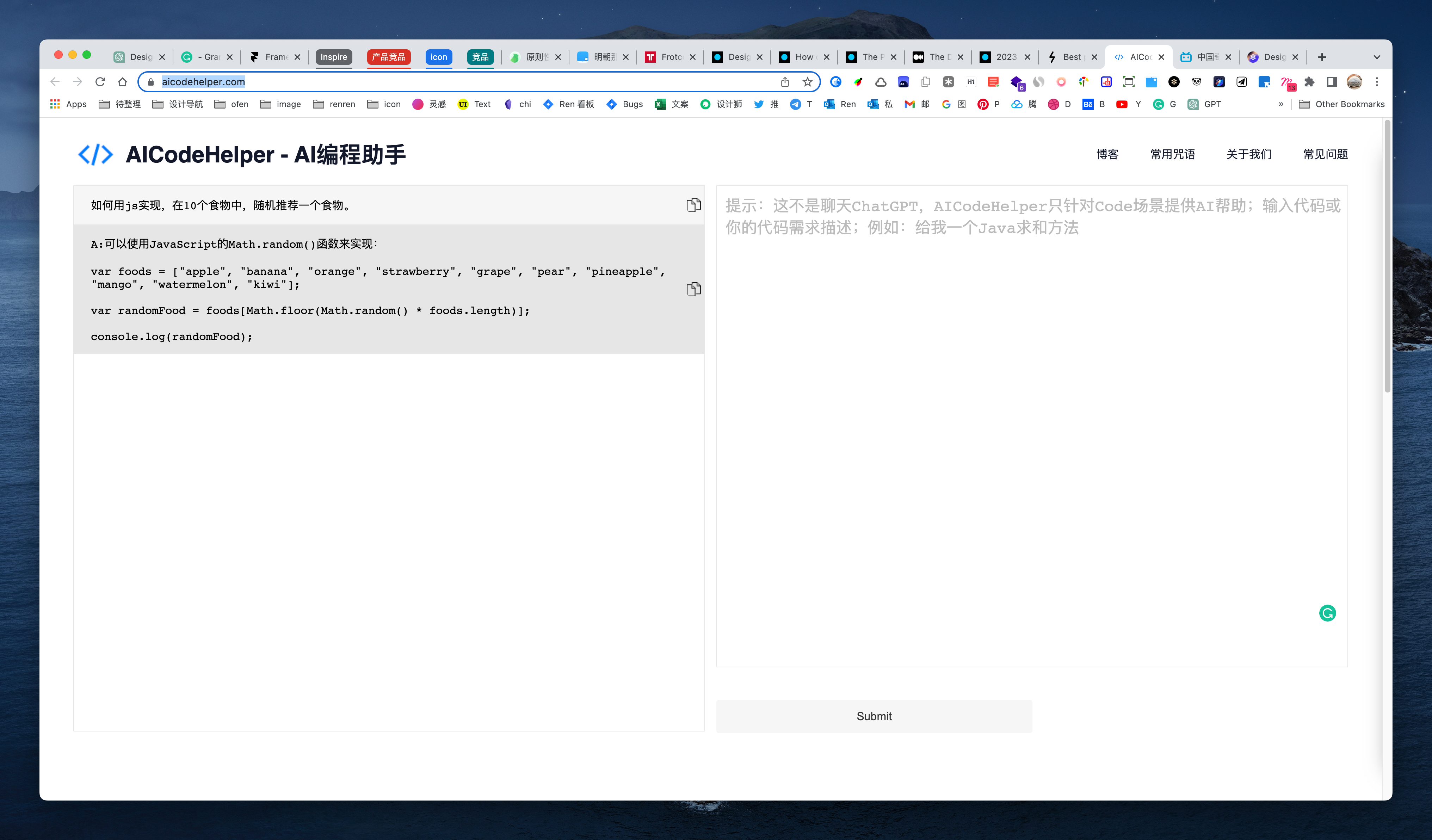 [AICodeHelper - AI编程助手](https://www.aicodehelper.com/) 20230107 问过一次如何写 js。