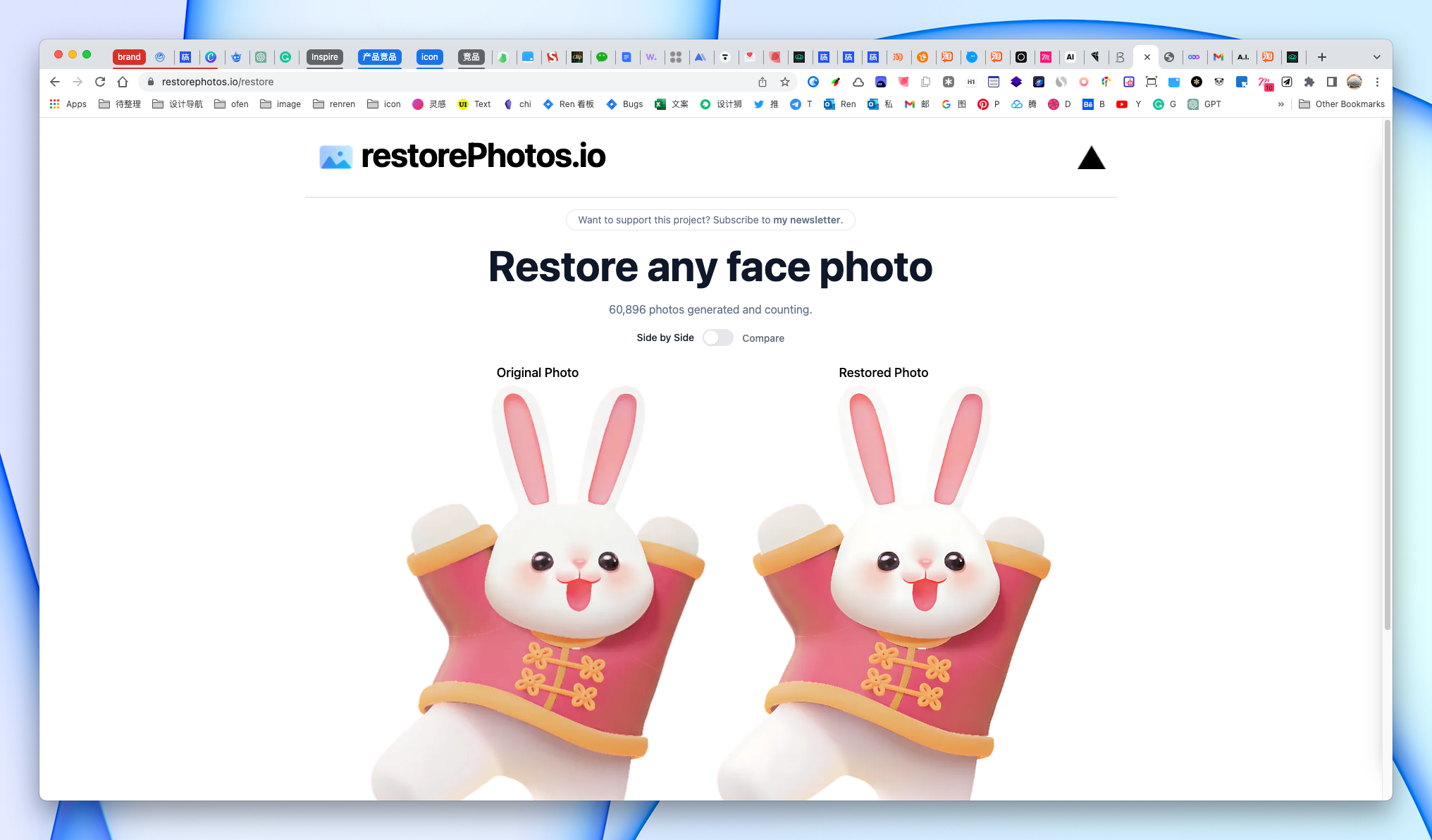 - [Restore Photos](https://www.restorephotos.io/restore) 当时测试兔子,这个效果最好。