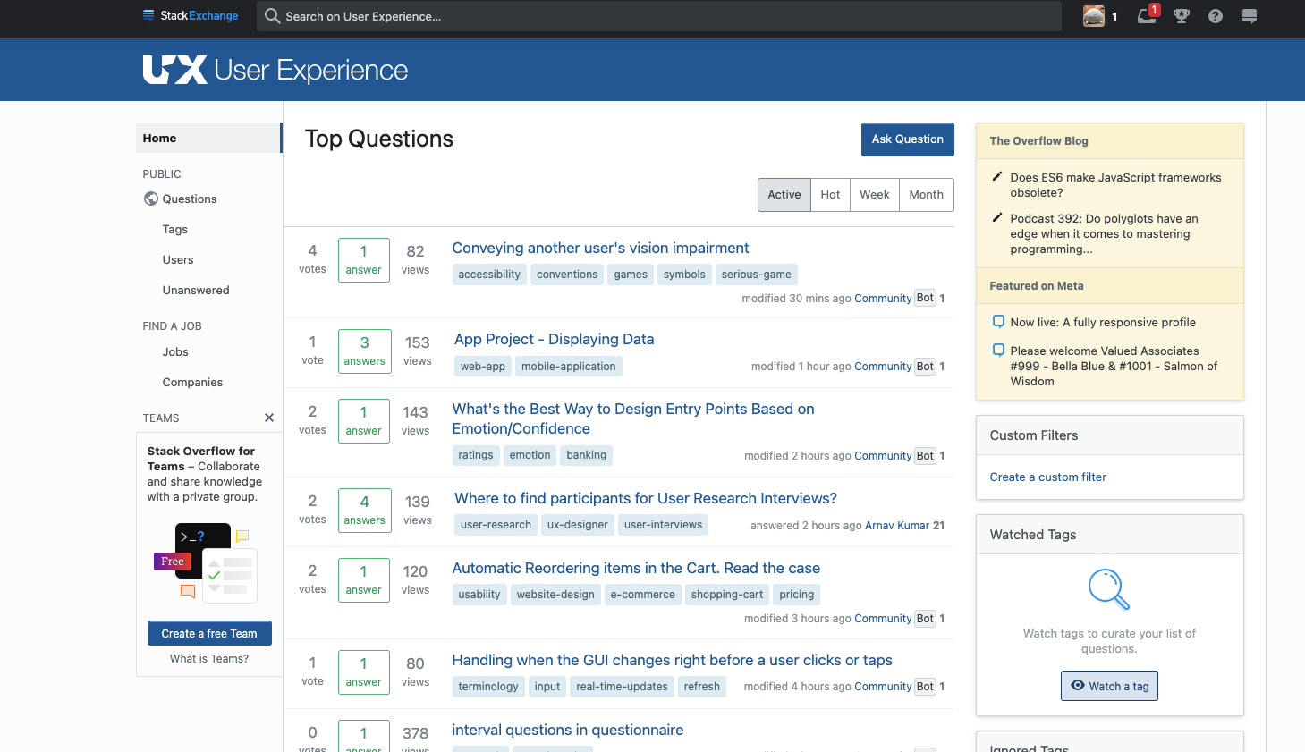 - [User Experience Stack Exchange](https://ux.stackexchange.com/) 看着挺不错的